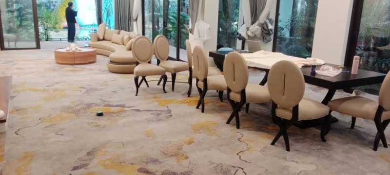 Với gam màu be nhẹ nhàng, thảm trải sàn đem đến vẻ đẹp gọn gàng và thanh thoát, tập trung vào sự hài hoà giữa màu sắc và chất liệu. Nó như một phông nền trang nhã, tôn lên vẻ đẹp của nội thất xung quanh. Đây là lựa chọn phù hợp cho những ai đề cao sự tối giản nhưng vẫn mong muốn sự tinh tế trong từng chi tiết.