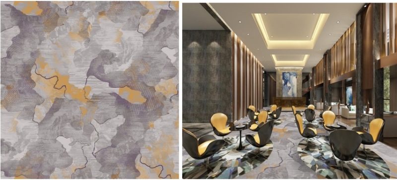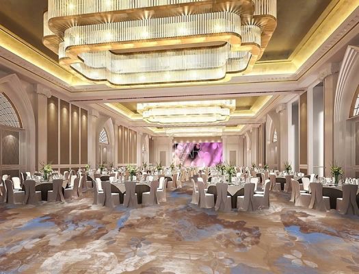 Hoạ tiết trừu tượng như ánh sáng chiều phản chiếu mặt nước của mã Sunset1885A trong phòng ballroom sang trọng